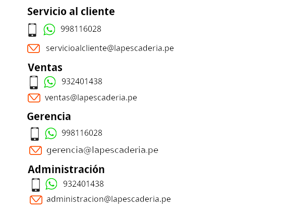 El procesamiento de nuestros productos se elabora con los mayores estándares de calidad y con la mejor materia prima del día. Hacemos la entrega de su pedido EN LA PUERTA DE SU CASA con la CALIDAD Y GARANTIA de carlos-bueno-portafolio.com/lapescaderia.pe y con personal capacitado en el servicio personalizado.